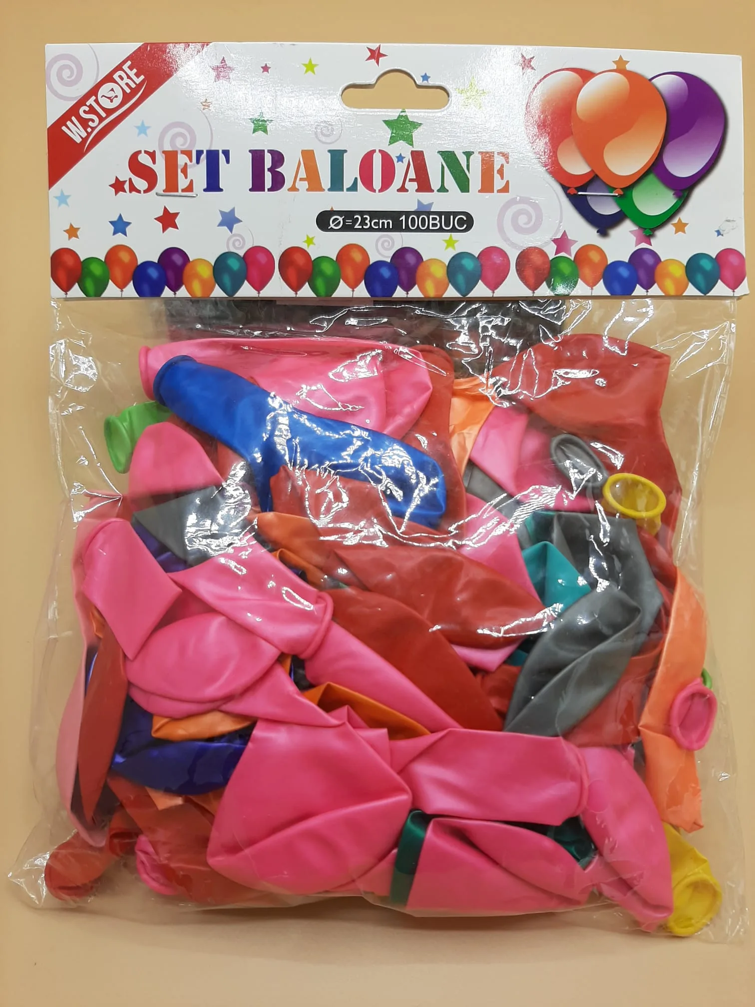 Contine 100 baloane 23 cm diverse culori